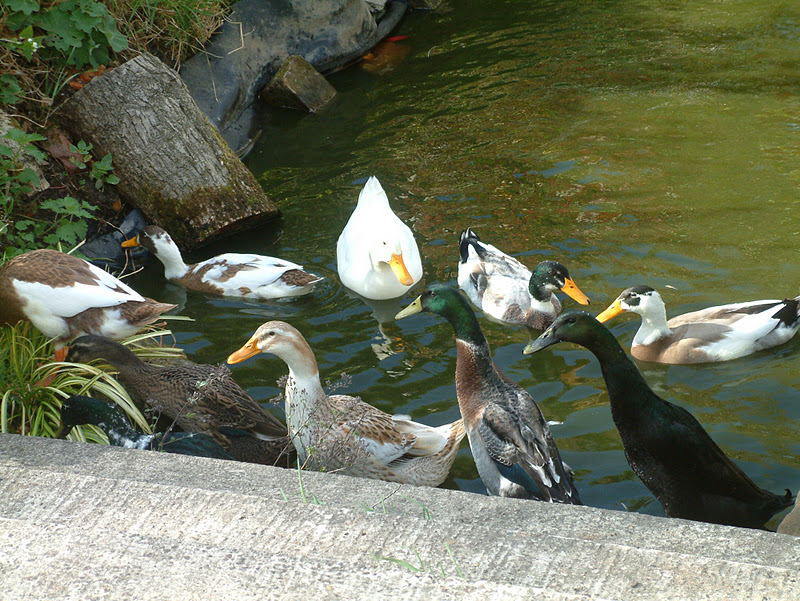 Als wir nach unserer Mahlzeit in Copt Oak zuhause ankamen waren wir erstaunt die 10 jungen immer noch im Froschteich zu sehen. Gewöhnlich laufen sie irgendwann am Morgen zu den anderen 5 und bleiben am großen Teich bis zum Abend. Einmal, als ich diese Fotos aufnahm, sind alle 10 raus aus dem Teich und dann sofort wieder reingegangen - ob ihnen die Windstärke auch zu doll war?